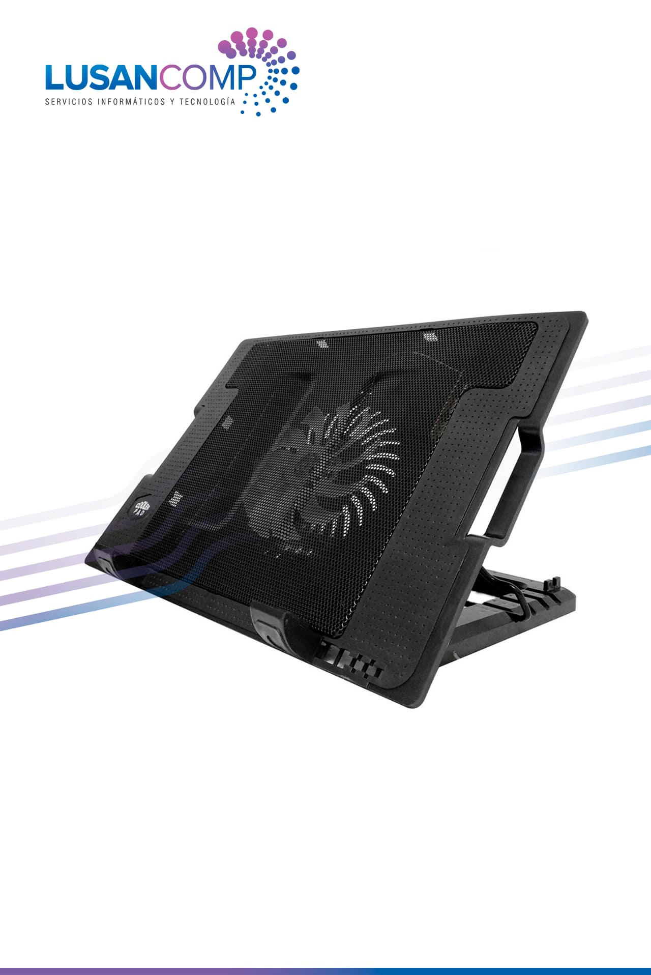 Ventilador grande de 140 mm incorporado para mayor flujo de aire para disipar el calor de la parte inferior de su computadora portátil.